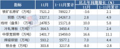 11月份,我国中厚宽钢带产量为1401.7万吨,同比增长16.6%;1-11月累计产量为15459.0万吨,同比增长11.1%。
