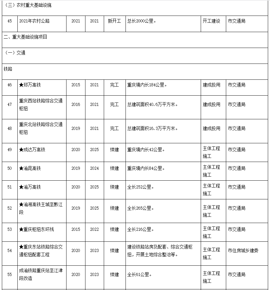 原文链接:重庆市人民政府办公厅关于做好2021年市级重大项目实施有关工作的通知
