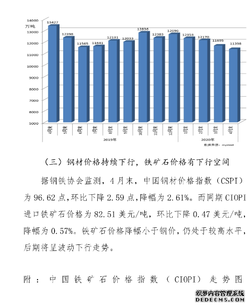 中钢协:4月份铁矿石价格小幅下降 后期将呈波动下行走势