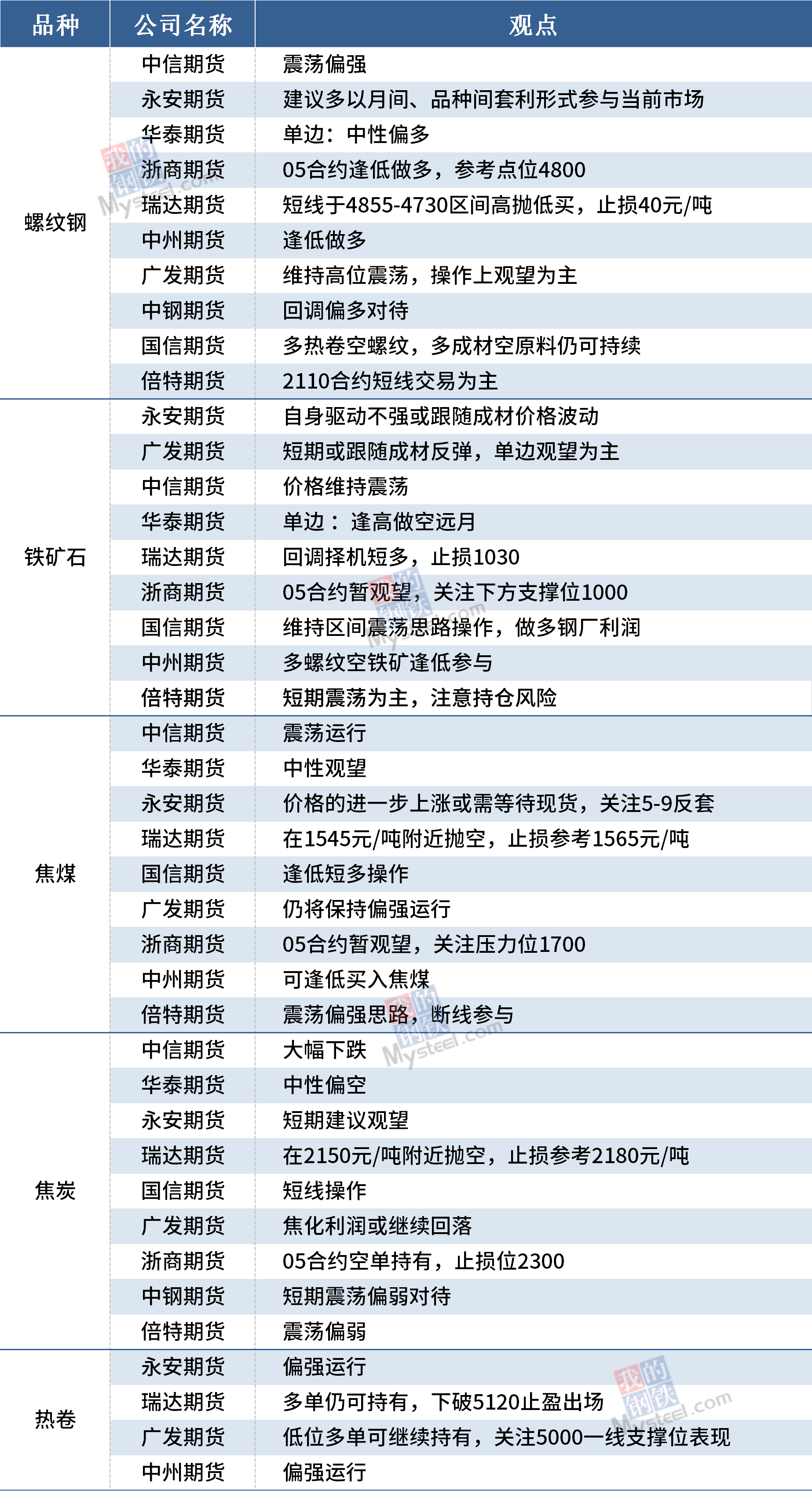 3月25日黑色期货机构观点汇总