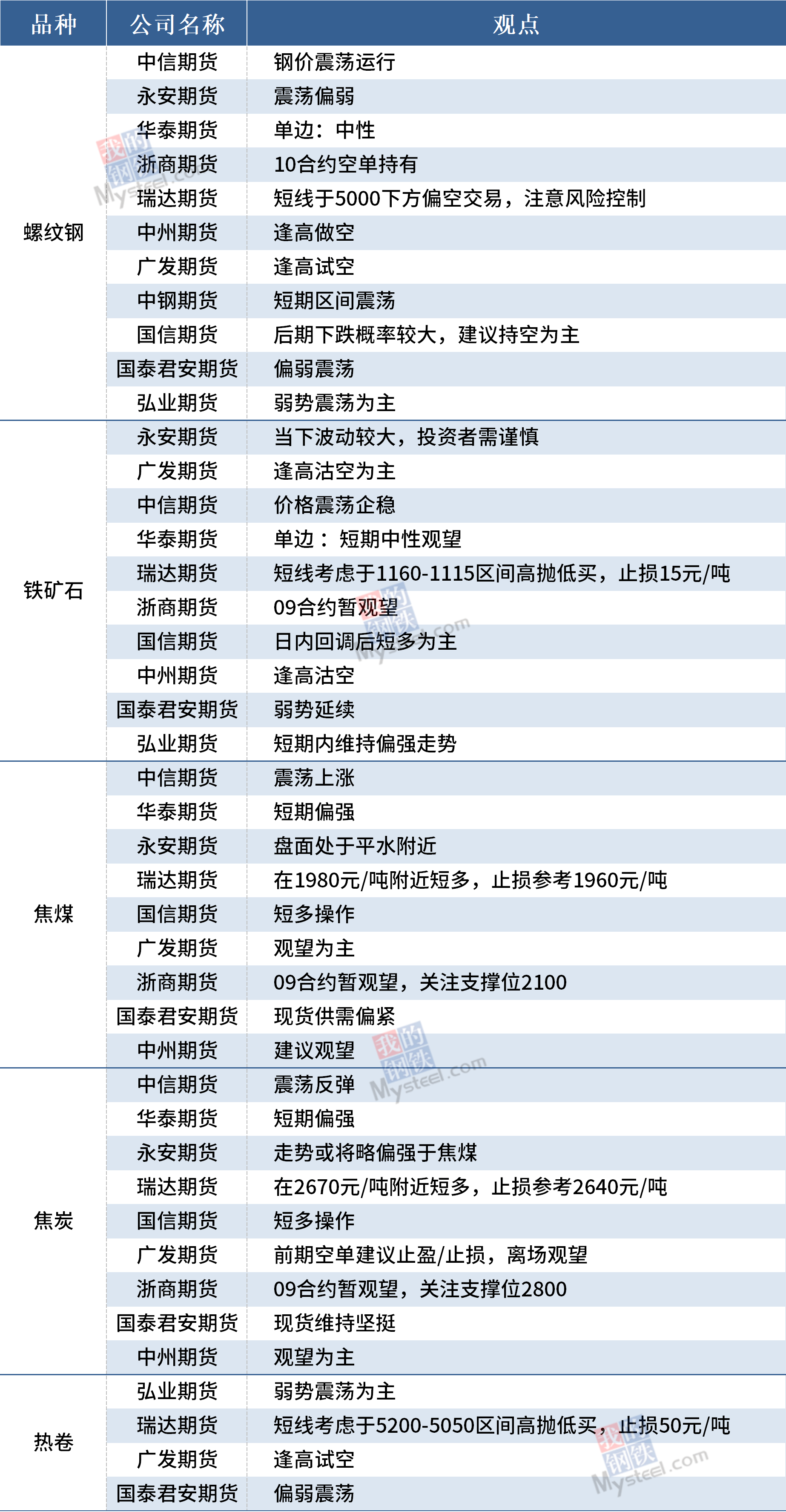 6月23日黑色期货机构观点汇总