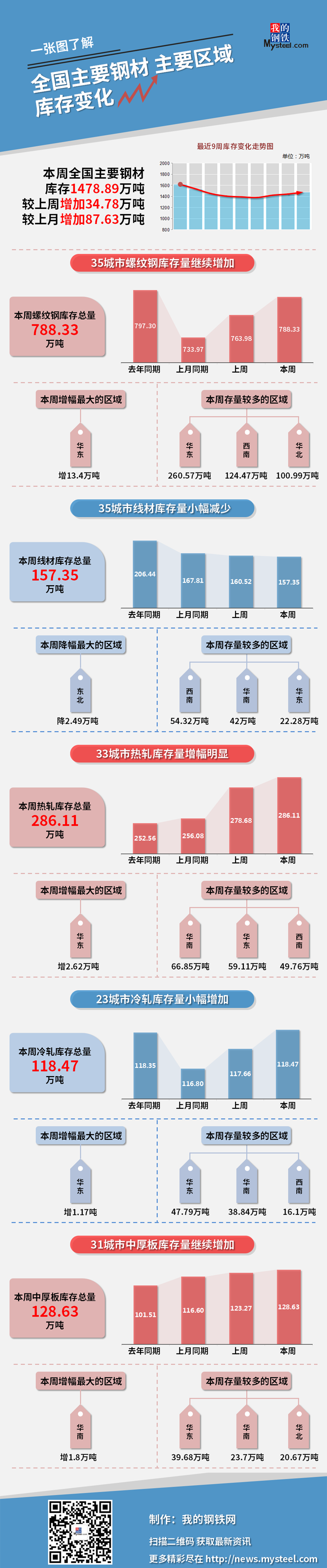 (备注:本文中钢材社会库存总量=35城市螺纹库存+35城市线材库存+33城市热轧库存+23城市冷轧库存+31城市中厚板库存)