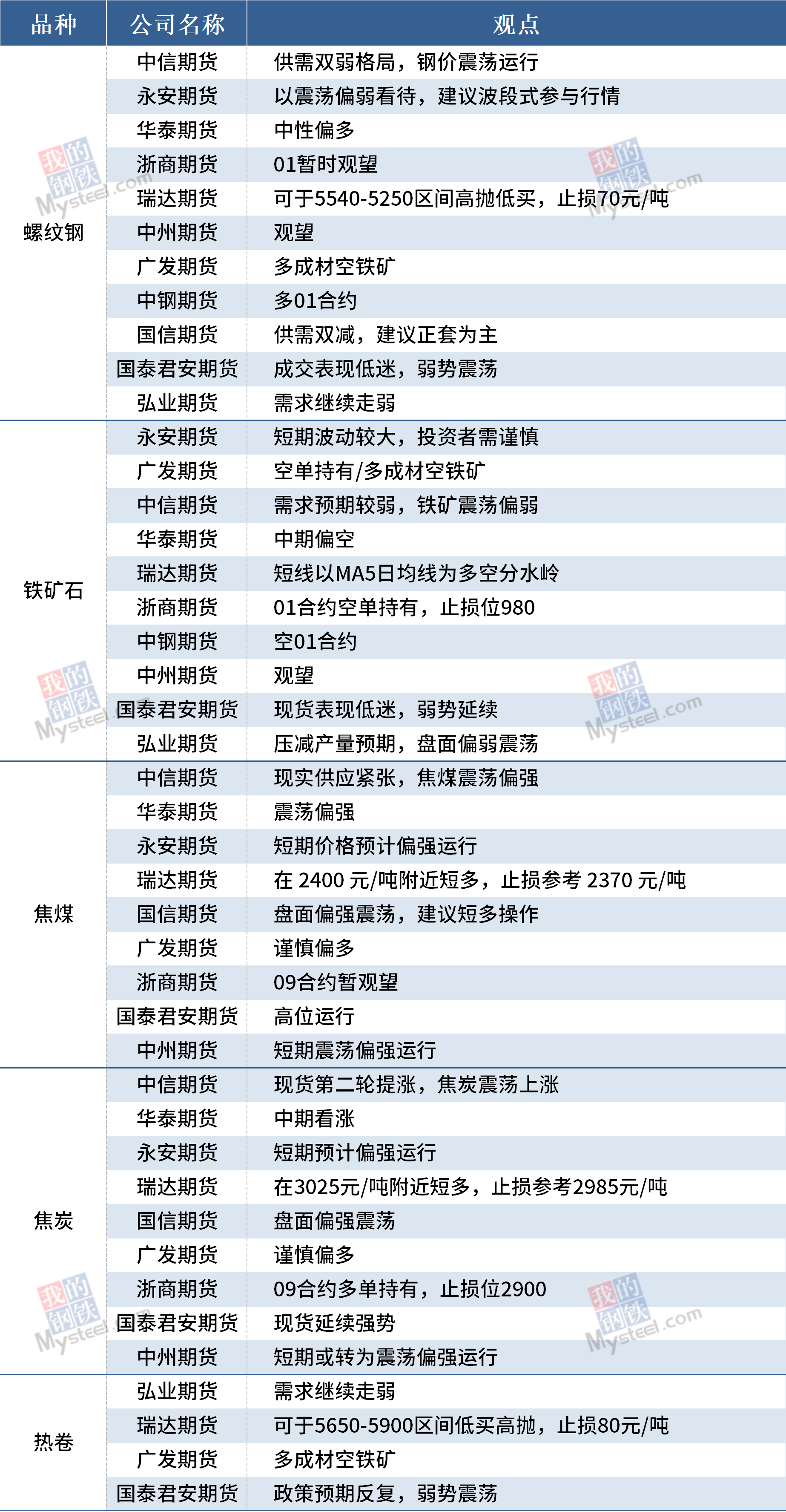 8月9日黑色期货机构观点汇总