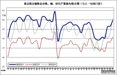 本月重点统计钢铁企业累计平均日产粗钢194.19万吨、环比增长6.46%、同比下降2.47%;生铁177.74万吨、环比增长4. 87%、同比增长0.36%;钢材188.70万吨、环比增长6.86%、同比下降0.54%。