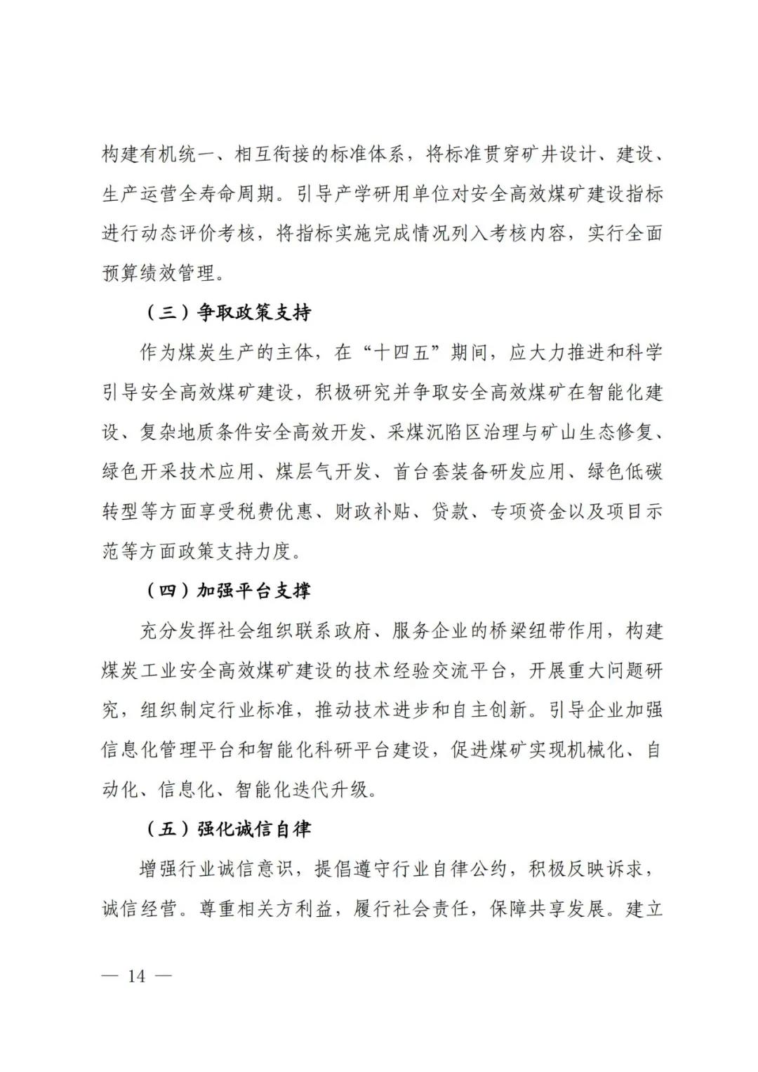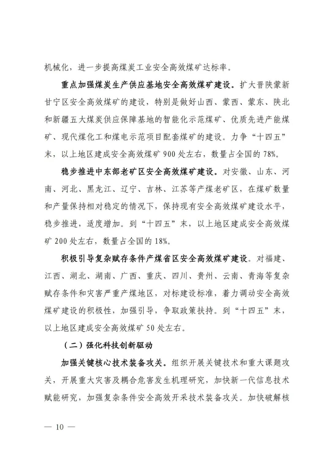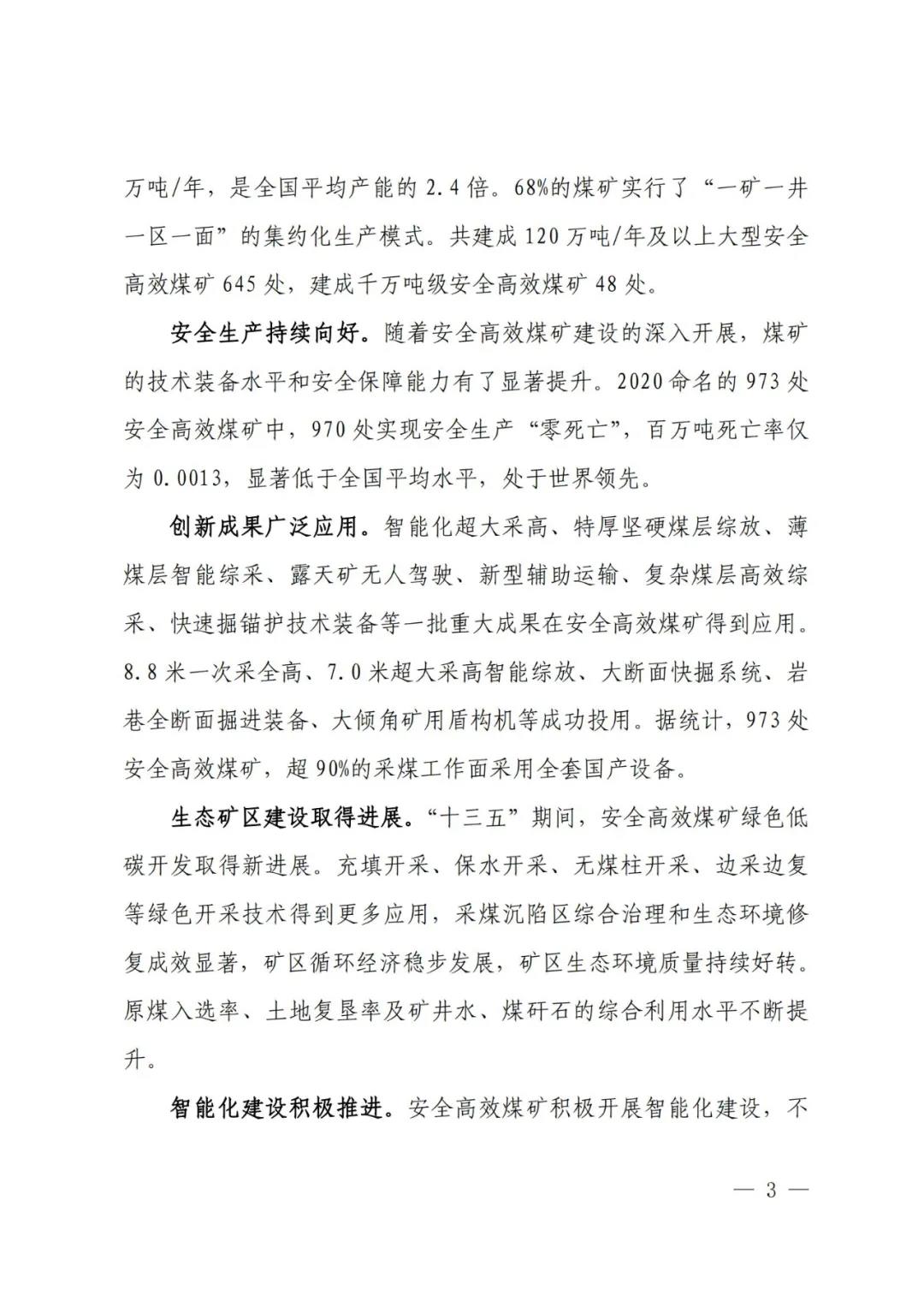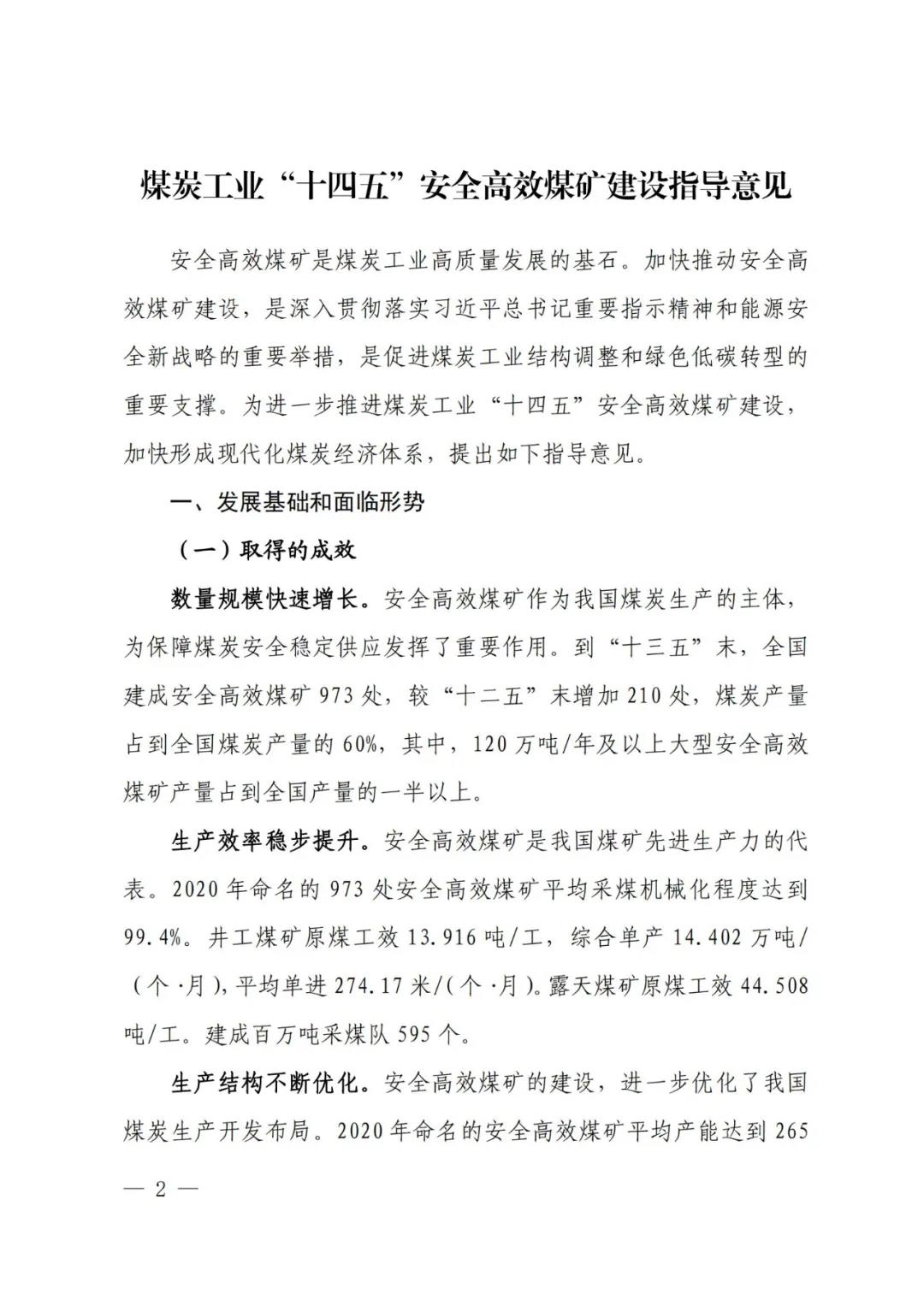 工业“十四五”安全高效煤矿建设指导意见》的通知。