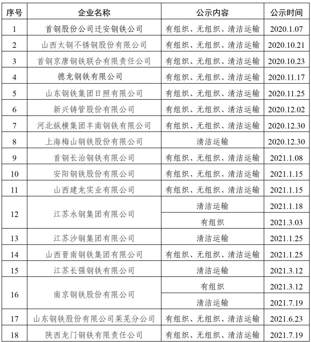 自2020年8月起,中国钢铁工业协会开展了钢铁企业超低排放改造和评估监测进展情况公示工作。截至目前,已有31家企业在钢协网站进行公示。已公示企业名单汇总及各企业公示内容整理如下: