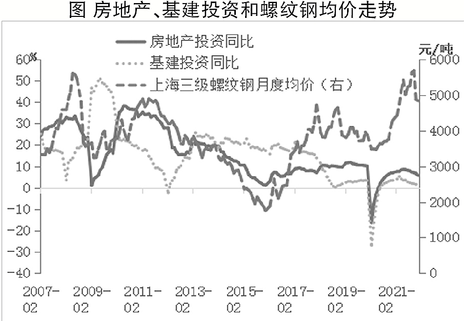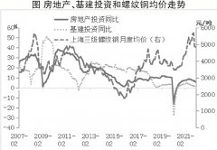 如果把时间周期放得更长的话,开年以来,螺纹钢价格的这波反弹其实在很大程度上得益于国内稳增长背景下的需求强预期。从目前情况看,市场情绪对于螺纹钢需求的前景比较乐观。春节之前,央行下调了1年期和5年期的贷款市场报价利率(LPR);2月份之后,多个城市相继推出了下调首套房的首付比例和房贷利率政策,特别是河南省郑州市成为了首个放松“认房又认贷”政策以及重启棚改货币化安置政策的城市。而今年《政府工作报告》在继续强调“房住不炒”的基调的同时,也强调了支持合理住房需求、因城施策等。基建方面,从2021年第4季度以来,一些重大项目已经陆续开工,且今年地方政府专项债支出有明显前置的特点。在这种情况下,笔者对于钢材的中期需求还是持相对乐观态度的。[图 房地产、基建投资和螺纹钢均价走势]