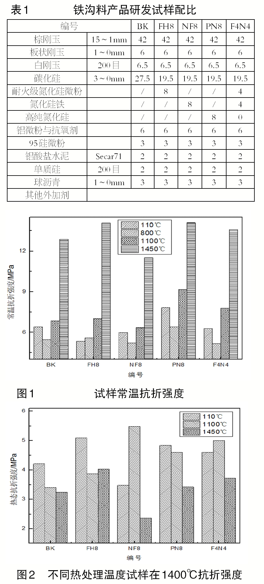 通过比较发现:引入耐火级氮化硅粉对铁沟料的高温强度及抗渣性有明显的提升,且与高纯氮化硅的综合作用相当。