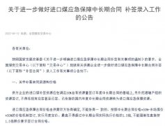 《公告》提出,供方企业的进口煤补签资源应在满足80%自有资源量签订年度中长期合同的基础上,另外挖潜增产组织资源签订,不得将现有应签甚至已签、已衔接的国内年度中长期合同资源转为进口煤应急保障资源。