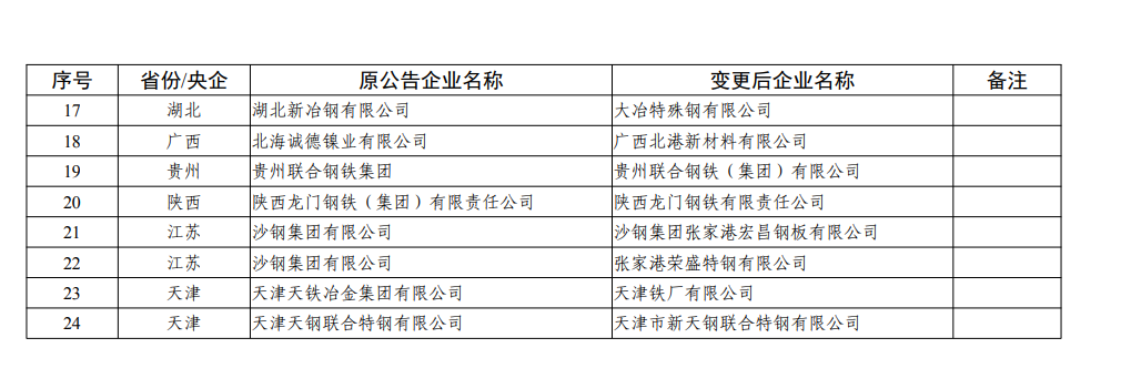 根据《钢铁行业规范条件(2015年修订)》和《钢铁行业规范企业管理办法》,我部开展了钢铁规范企业动态调整工作。经企业自查、地方工业和信息化主管部门和有关中央企业初审、专家评审、网上公示等程序,现对符合《钢铁行业规范条件》企业名单(第六批)、撤销钢铁行业规范公告的企业名单、需整改的钢铁行业规范企业名单、变更钢铁行业规范公告名称的企业名单予以公告。