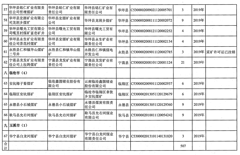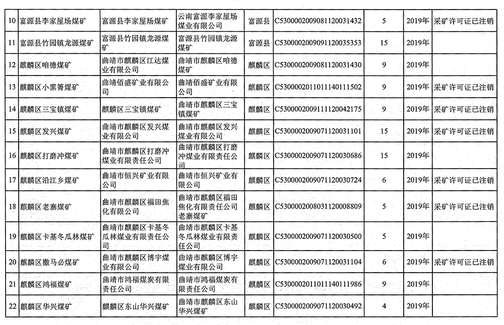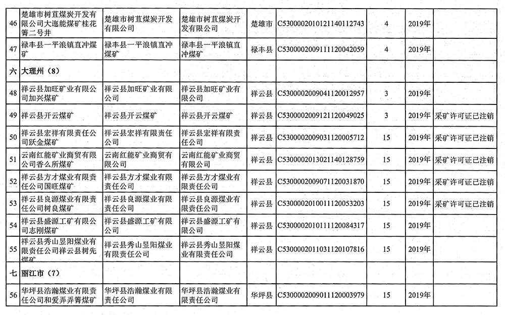 云南省2019年煤炭行业淘汰落后和化解过剩产能退出煤矿名单公告中,涉及关闭退出的煤矿要及时完成安全生产许可证的注销工作。作出关闭退出决定的县级以上地方人民政府(或部门)应明确矿山关闭后相关生态修复等法定义务履行责任主体。