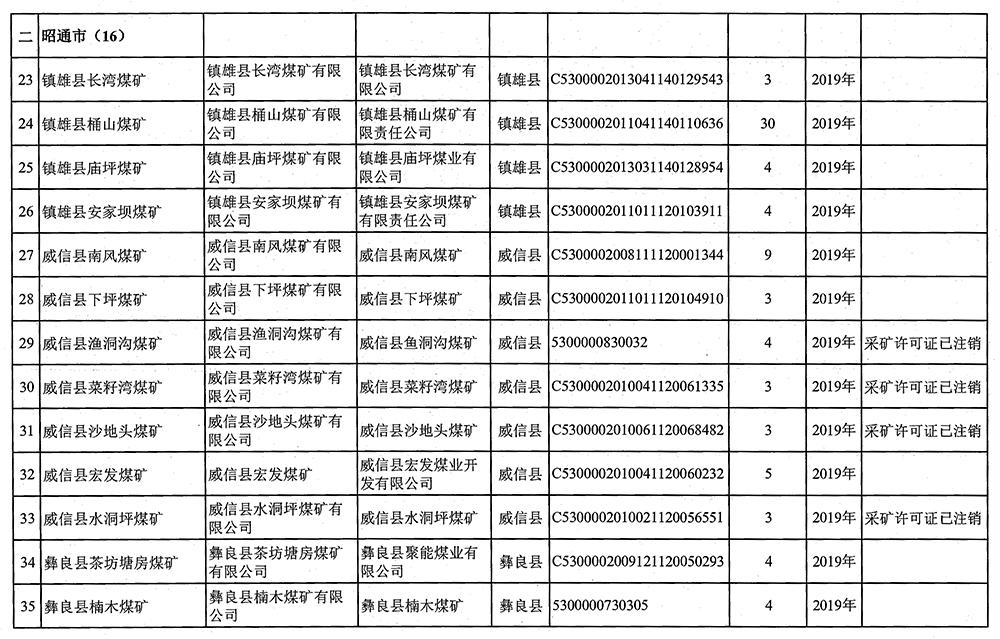 附表:云南省2019年煤炭行业淘汰落后和化解过剩产能退出煤矿名单.xlsx