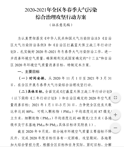 附原文:《2020-2021年宁夏冬春季大气污染综合治理攻坚行动方案(征求意见稿)》印发