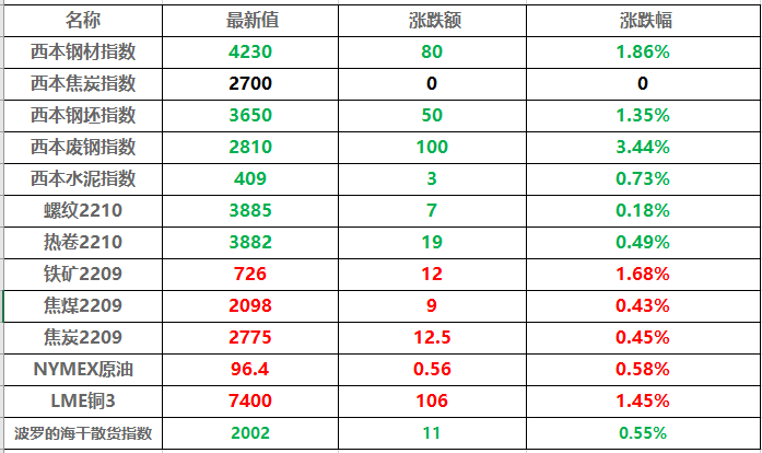 LME期铜收跌28美元,报7326美元/吨。LME期铝收跌4美元,报2356美元/吨。LME期锌收跌65美元,报2951美元/吨。LME期铅收涨16美元,报1954美元/吨。LME期镍收跌224美元,报21150美元/吨。LME期锡收跌210美元,报25364美元/吨。