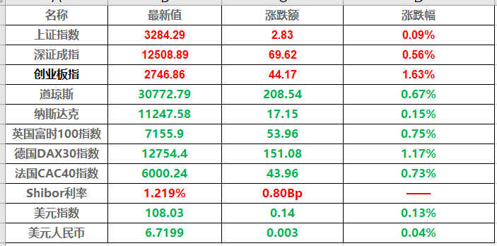1、创业板指全天大涨1.63%