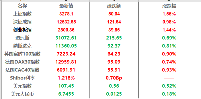 22、股市及外汇行情一览表