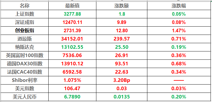 1、创业板指冲高回落涨0.47%