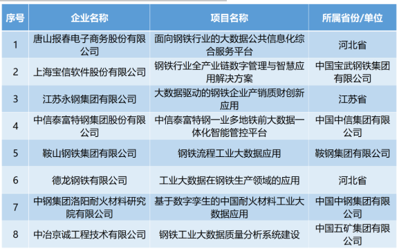 8个钢铁相关项目入选工信部2022年大数据产业发展试点示范项目名单