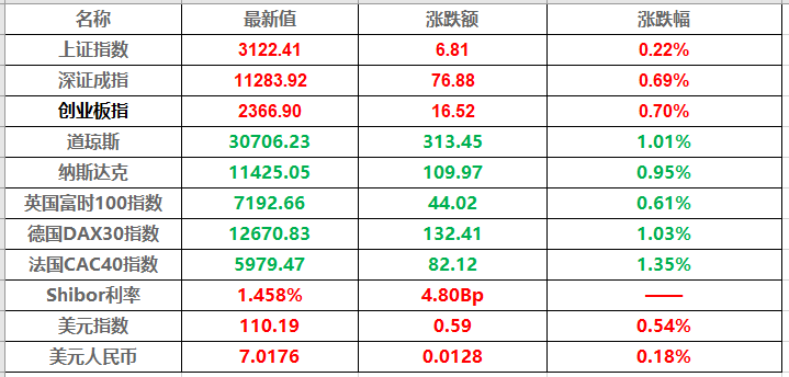 1、指数午后震荡回落创指涨0.7%