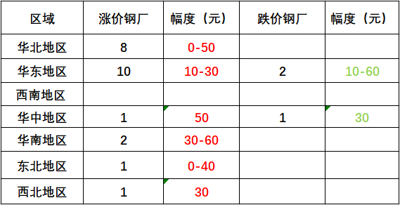 钢厂方面:据不完全统计,昨日国内约有26家钢厂建材出厂价格出现调整,其中大部分钢厂出厂价以上调为主。(见下图)