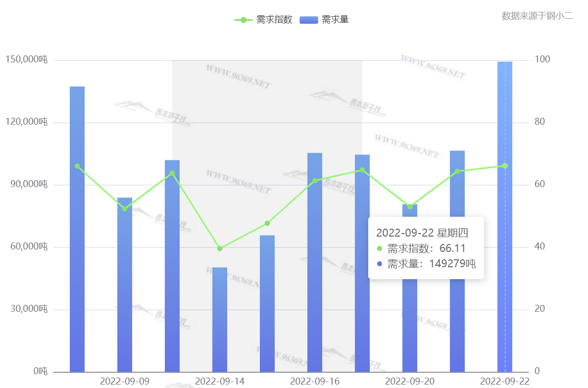 工程需求方面:据钢小二平台采样数据,昨日全国工程需求量为149279吨,环比前一交易日需求上升40.2%,同比上周同期需求上升127.2%。其中上海63448吨,环比昨日上升、广州4208吨,环比昨日下降、杭州7987吨,环比昨日下降。工程需求PMI66,需求较好。(见下图)