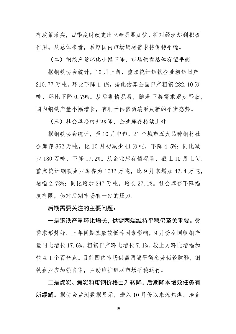 9月份,国内市场钢材需求形势略有好转,钢铁产量环比增长,