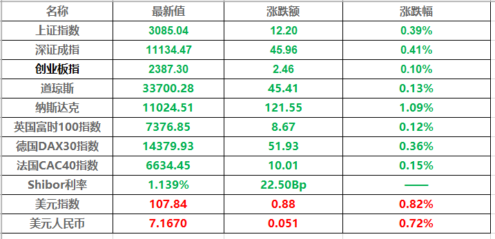 23、股市及外汇行情一览表