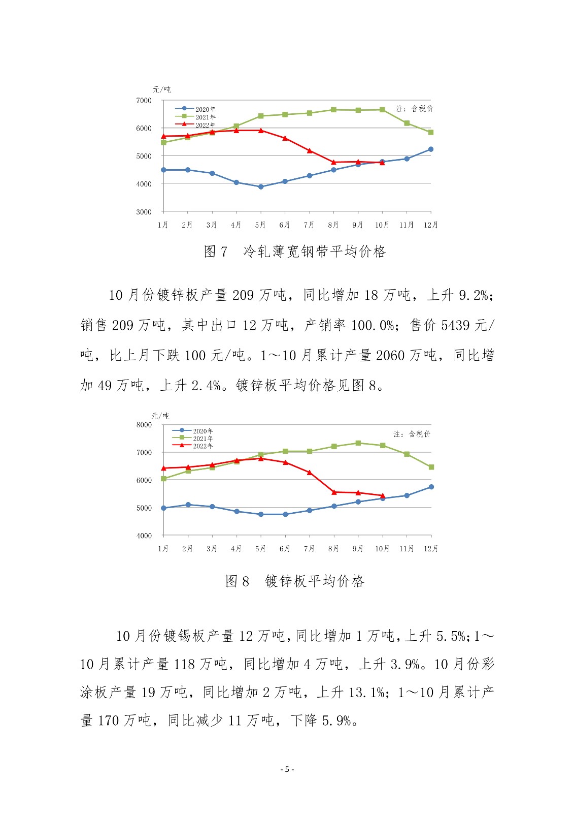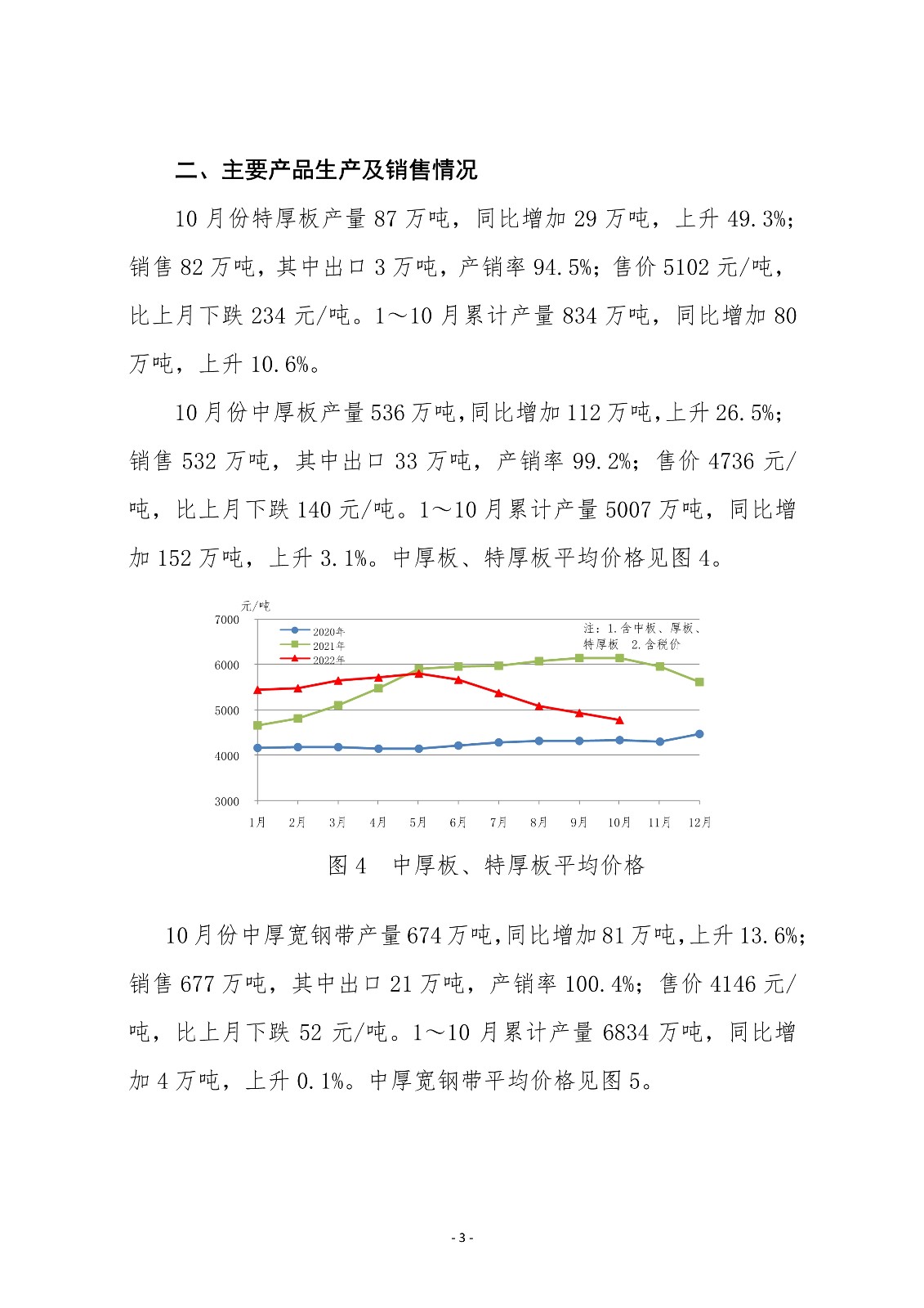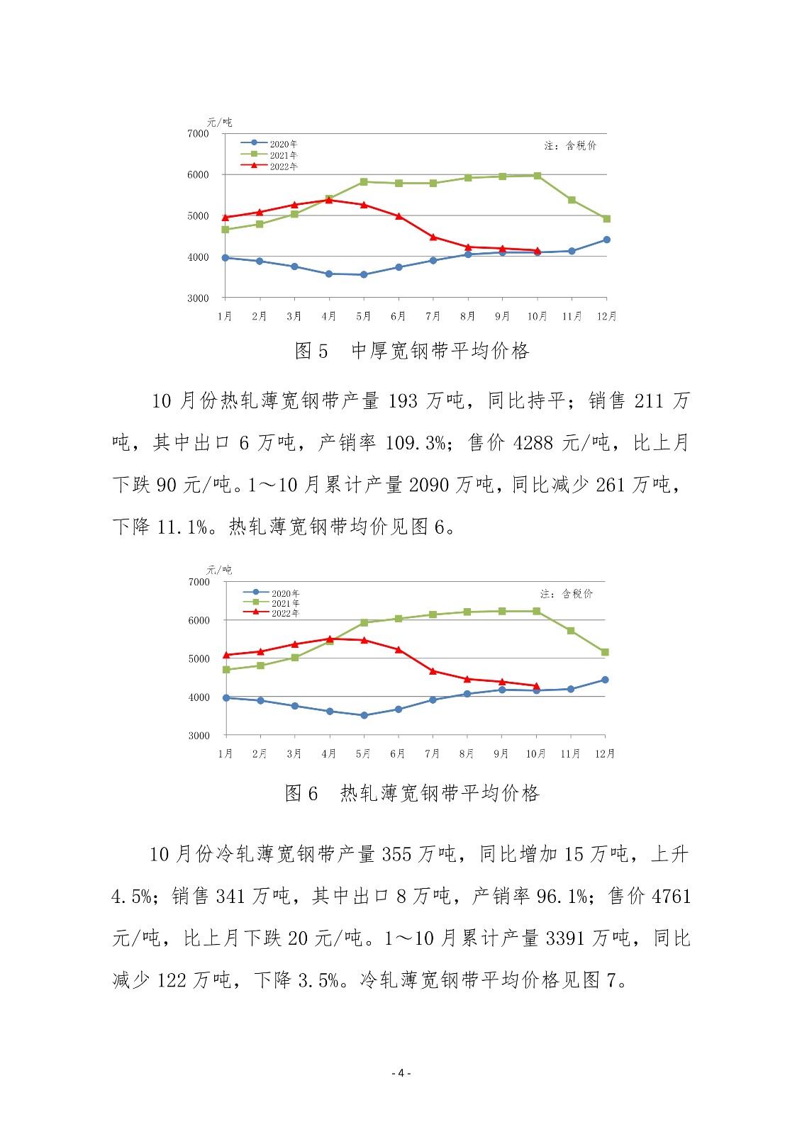 10月份,中厚板轧机、热连轧机和冷连轧机产量环比、同比均有所上升。主要品种板中造船板、桥梁板、管线钢板和汽车板产量同比增幅较大,集装箱板和家电板产量同比降幅较大。