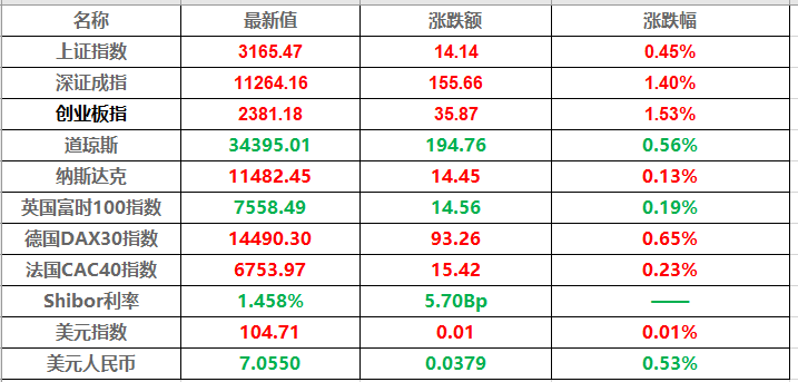 12月1日,大盘全天冲高回落,创业板指领涨。总体上个股涨多跌少,两市超3200只个股上涨。沪深两市今日成交额10584亿,较上个交易日放量1267亿,成交金额重回万亿。截至收盘,沪指涨0.45%,深成指涨1.4%,创业板指涨1.53%。北向资金全天大幅净买入114.5亿元,创11月14日以来新高;其中沪股通净买入37.16亿元,深股通净买入77.34亿元。