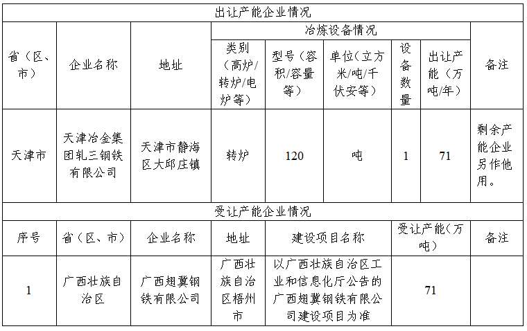 按照《国务院关于化解产能严重过剩矛盾的指导意见》《国务院关于钢铁行业化解过剩产能实现脱困发展的意见》和《钢铁行业产能置换实施办法》要求,现将天津冶金集团轧三钢铁有限公司产能出让情况予以公示,欢迎社会公众进行监督。联系电话:23313526。公示期为20个工作日。
