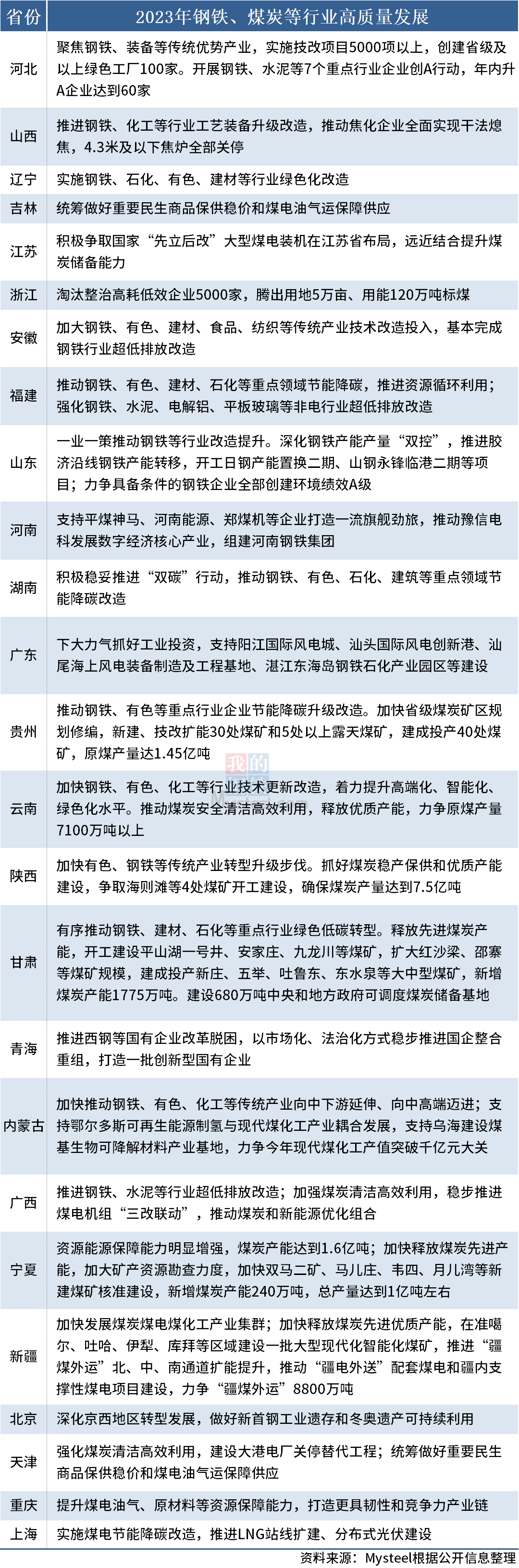 Mysteel:2023年各省钢铁、煤炭等行业要这样干