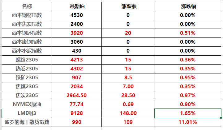 铁矿石、液化石油气(LPG)、PTA、玻璃、焦炭涨近1%。跌幅方面,低硫燃料油(LU)跌超1%,菜粕、豆粕跌近1%。国际铜夜盘收涨0.56%,沪铜收涨0.49%,沪铝收涨0.65%,沪锌收涨1.20%,沪铅收涨0.13%,沪镍收跌1.58%,沪锡收跌0.16%。不锈钢夜盘收跌0.21%。上期所原油期货2304合约夜盘收涨0.02%,报555.90元人民币/桶。沪金夜盘收跌0.05%,沪银收涨0.12%。