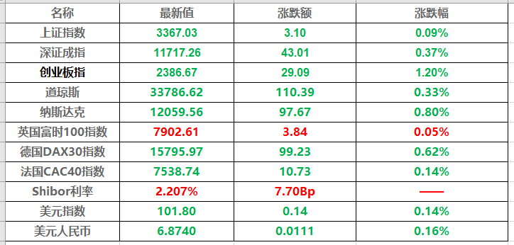 17、股市及外汇行情一览表