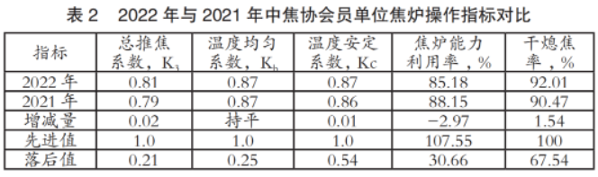 2022年,焦化企业把握生产节奏,抓紧环保设备升级改造的同时,调整焦炉运行节奏,稳定焦炉生产秩序,遏制了各项工艺技术指标的下滑。