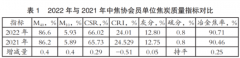 2022年,中国炼焦行业协会139家会员单位(以下简称会员单位)统计表明,焦炭质量总体水平平稳,冶金焦抗碎强度M40和耐磨强度M10同比均提高了0.4个百分点,焦炭的2个热强度指标,CSR同比提高0.29个百分点、CRI同比改善0.51个百分点,(表1)。