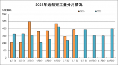 按修正总吨计,中国造船完工量、新接订单量、手持订单量分别占世界市场份额的46%、63.3%和48.4%。