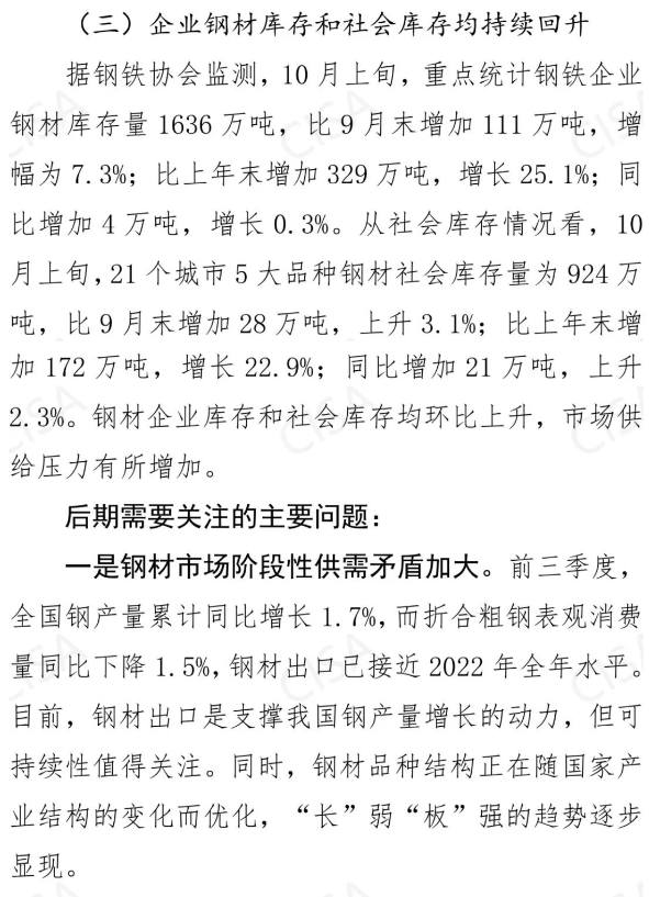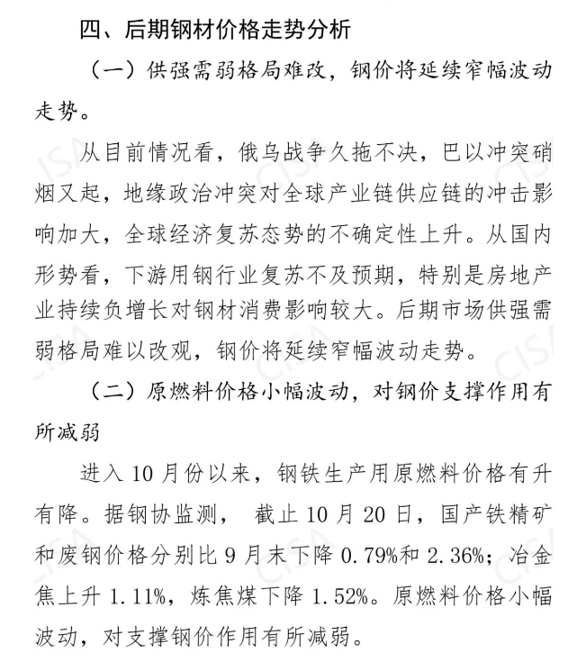 总体呈窄幅波动态势。9月末,钢材价格环比小幅上升。进入10月份后,又呈小幅回落走势。