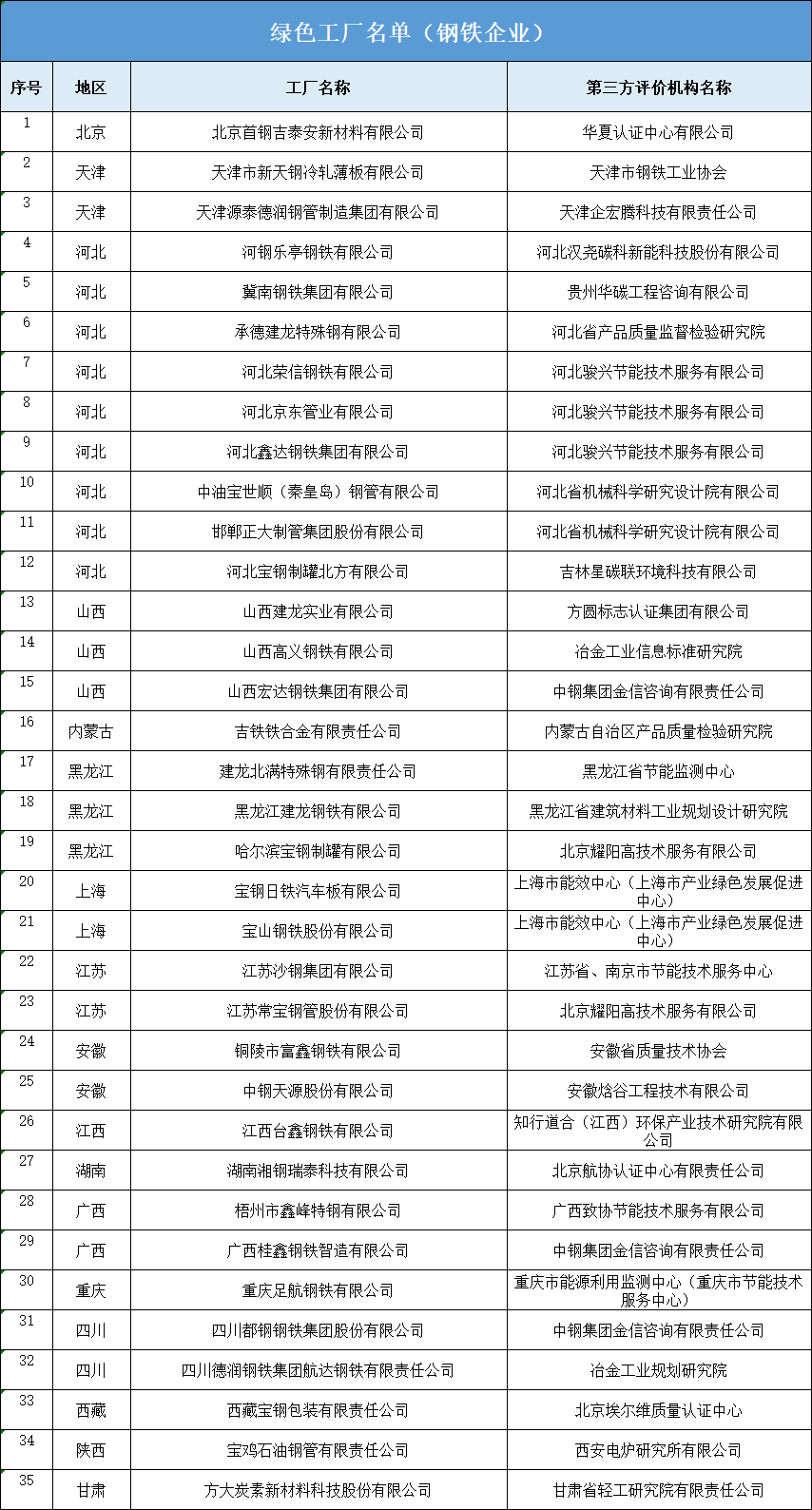 其中,据不完全统计,35家钢铁相关企业上榜绿色工厂名单。