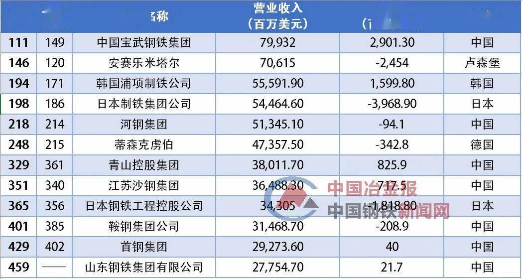 8月10日,《财富》中文网发布了2020年《财富》世界500强排行榜。据《中国冶金报》、中国钢铁新闻网统计,今年世界范围内共有12家钢企入选世界500强,中国宝武集团排名首次超过安赛乐米塔尔,在世界钢企排名中位列第一。