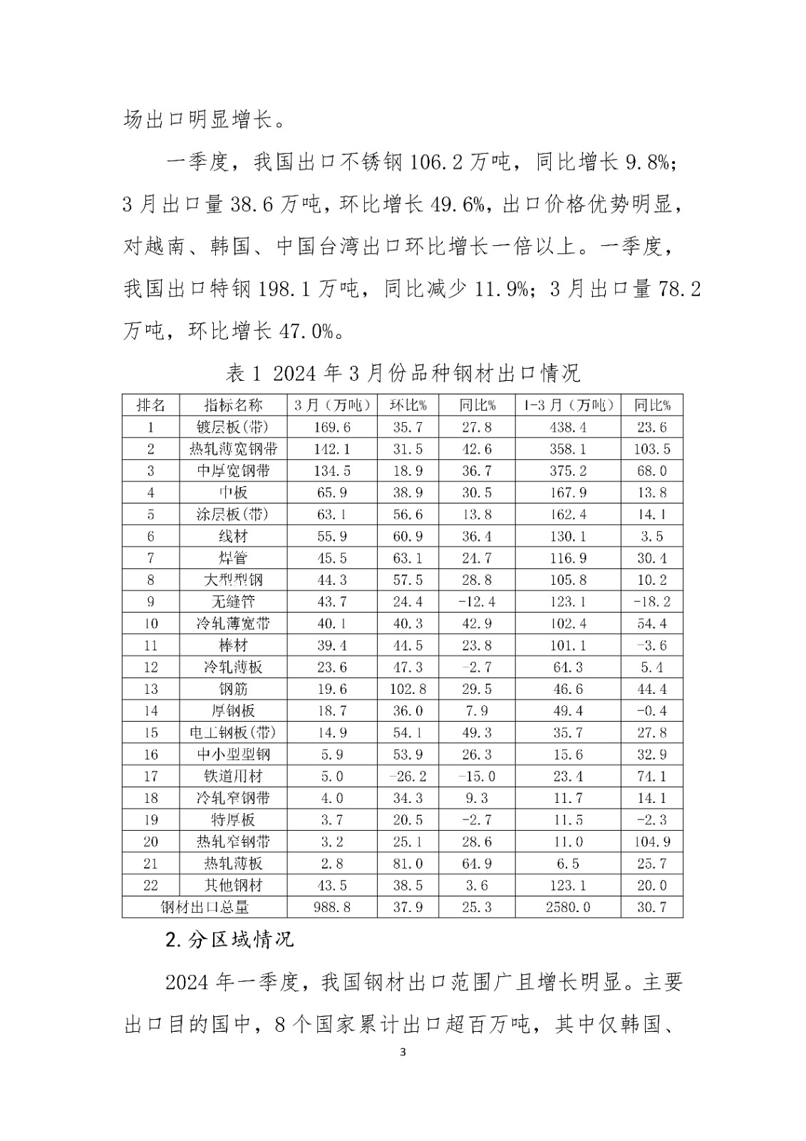 2024年3月钢铁产品进出口月报