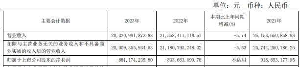 凌钢股份公布2023年年度报告,报告期实现营业收入203.21亿元,同比下降5.74%;归属于上市公司股东的净利润-6.81亿元;基本每股收益-0.24元。