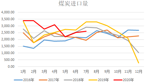 从国内主产区产量来看,内蒙古由于“倒查20年”的政策力度很大,极大抑制了超产煤,表外供应明显收缩;陕西地区近期传出“明盘”全部关停的消息,但实际情况应该是陕西主产区一直在整治露天矿,但并没有一刀切,该消息的实际影响较为有限,但今年陕西地区的“煤管票”政策显著抑制了超产和黑煤供应。从煤炭运销协会数据来看,今年1-7月原煤累计产量21.2亿吨,同比下降0.1%,7月原煤产量进一步下降,单月产量为3.2亿吨,同比下降3.7%,环比下降4.9%。