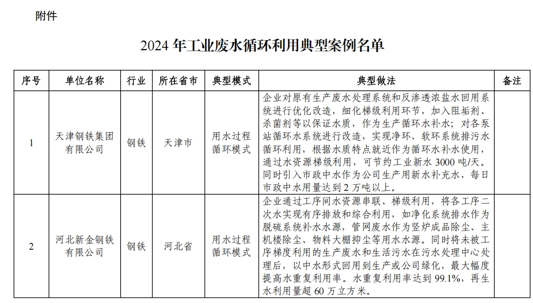 根据《工业和信息化部办公厅关于开展2024年工业废水循环利用典型案例征集工作的通知》(工信厅节函〔2024〕280号),经地方推荐、专家评审和网上公示,确定了2024年工业废水循环利用典型案例名单,现予以公布。