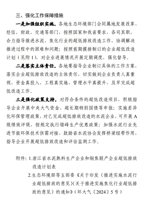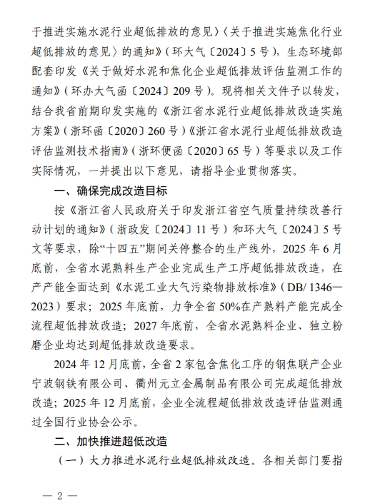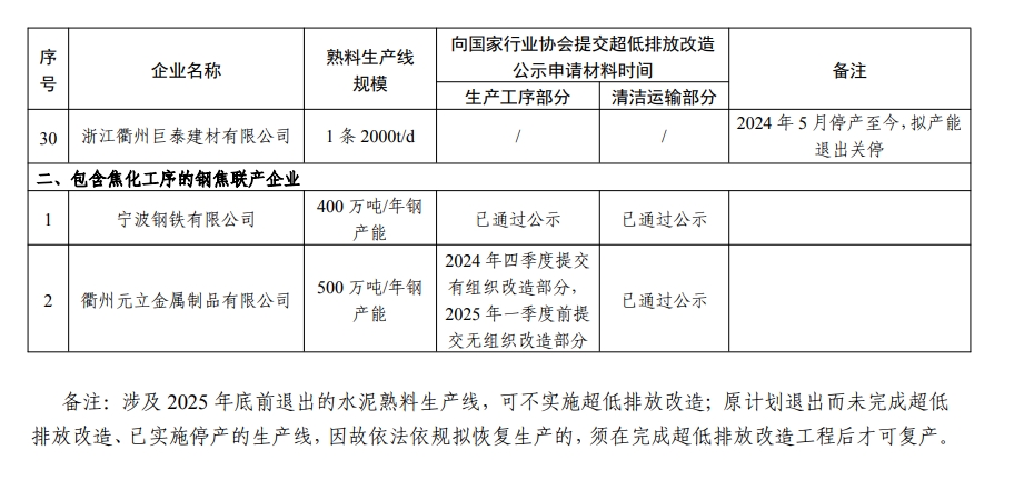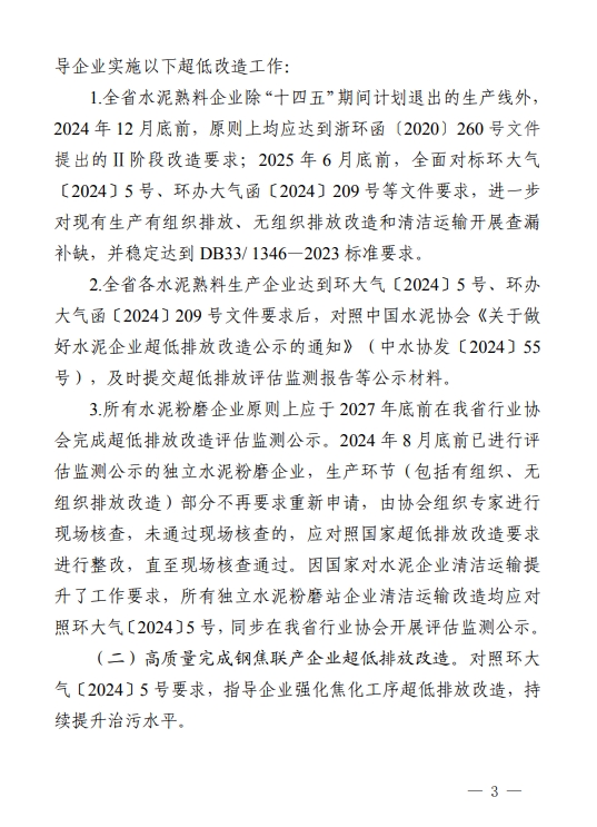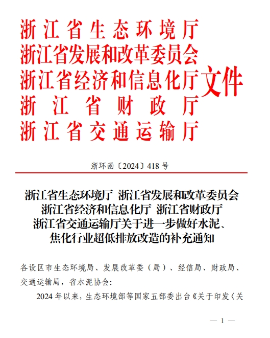 近日,浙江省生态环境厅等五部门联合发布《关于进一步做好水泥、焦化行业超低排放改造的补充通知》。文件要求,2024年12月底前,全省2家包含焦化工序的钢焦联产企业宁波钢铁有限公司、衢州元立金属制品有限公司完成超低排放改造;2025年12月底前,企业全流程超低排放改造评估监测通过全国行业协会公示。