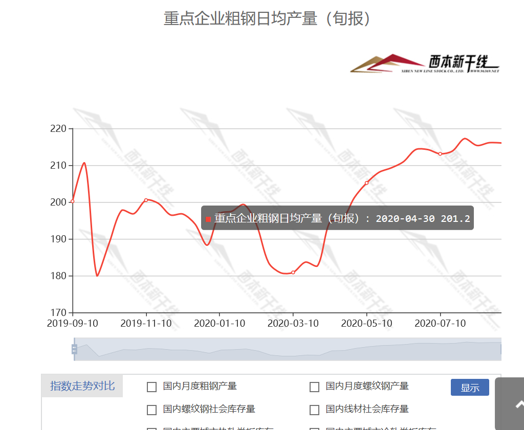 新干线讯 据中钢协公布的数据,2020年8月下旬,重点统计钢铁企业共生产粗钢2376.22万吨、生铁2118.52万吨、钢材2412.99万吨、焦炭357.01万吨。本旬平均日产,粗钢216.02万吨,环比减少0.04%、同比增长7.16%;生铁192.59万吨,环比增长1.03%、同比增长6.20%;钢材219.36万吨,环比增长6.08%、同比增长10.04%。