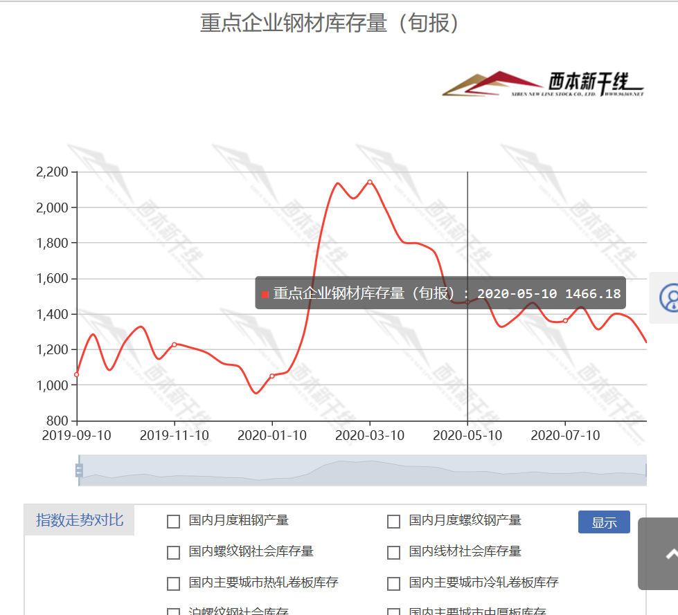 本旬,重点统计钢铁企业钢材库存量1236.96万吨,比上一旬减少135.55万吨,减幅9.88%;比年初增加283.71万吨,增幅29.76%。