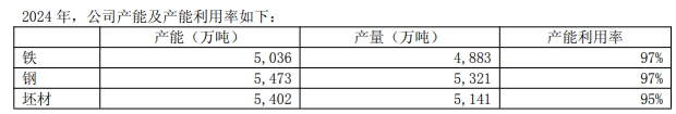 2025年,公司计划产铁4879万吨、产钢5261万吨、销售商品坯材5224万吨,营业总收入3120亿元、营业成本2909亿元。