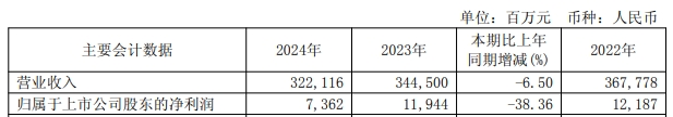 近日,宝钢股份发布2024年年报,2024年公司营业收入为3221.16亿元,同比下降6.5%;归属于上市公司股东的净利润为73.62亿元,同比下降38.36%。