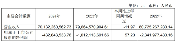 4月28日,柳钢股份公告,2024年营业收入701.32亿元,同比减少11.97%;归属于上市公司股东的净利润亏损4.33亿元,上年同期净亏损10.12亿元。