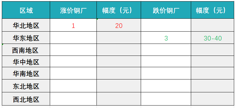 钢厂方面:据不完全统计,上个交易日国内4家钢厂建材出厂价格出现调整,多数钢企维持平稳。
